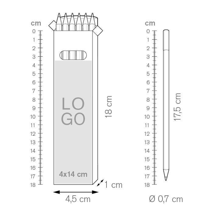 set 6 matite con finitura colorata; corpo acero; fornite già temperate; corredato di astuccio in carta naturale; tecnica di stampa consigliata: serigrafica - tampografica - UV