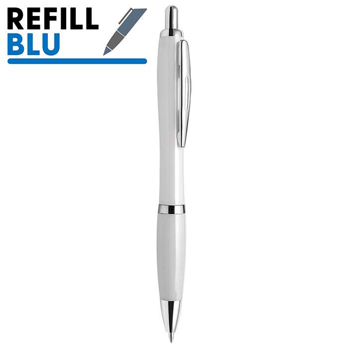 penna a sfera; meccanismo a scatto; corpo in plastica colorata; minuterie in metallo cromato; refill jumbo; inchiostro blu; tecnica di stampa consigliata: tampografica - UV