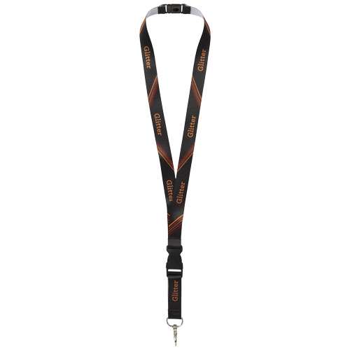 Lanyard con personalizzazione full color in sublimazione su un lato, retro bianco. Perfetto per agganciare badge, tesserino identificativo o chiavi. Dotato di moschettone in metallo, fibbia in plastica e sgancio di sicurezza. Disponibile in quattro misure differenti: 10, 15, 20 e 25mm.