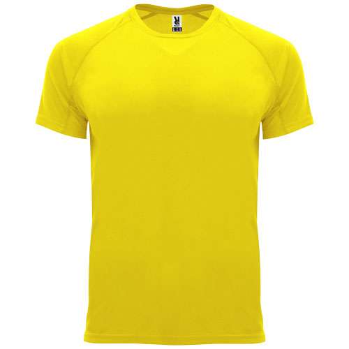 T-shirt tecnica a maniche corte raglan. Girocollo con copri cuciture abbinate. Inserti sula parte inferiore delle maniche. Profili tono su tono sul giromanica e sull’inserto delle maniche. Tessuto CONTROL DRY. Etichetta rimovibile. Tessuto tecnico. Il modello è alto 123 cm ed indossa una taglia 4.