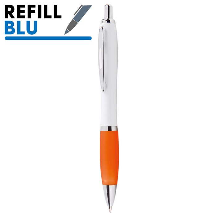 penna a sfera; meccanismo a scatto; corpo in plastica colorata; minuterie in metallo cromato; refill jumbo con sfera al tungsteno; inchiostro nero; tecnica di stampa consigliata: serigrafica - tampografica - UV