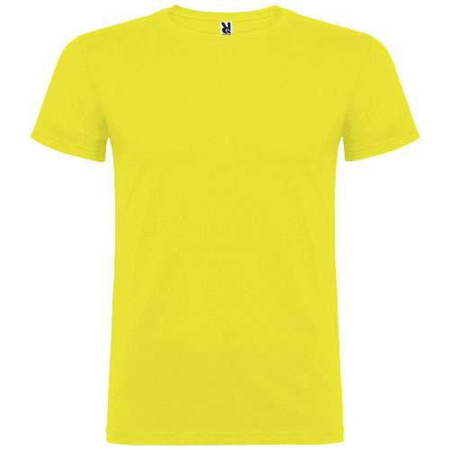 T-shirt a maniche corte con girocollo a doppio strato in elastan, realizzata in tessuto tubolare per adulti. Copri cuciture rinforzate sul colletto. Etichetta rimovibile. Il modello è alto 190 cm ed indossa una taglia L.