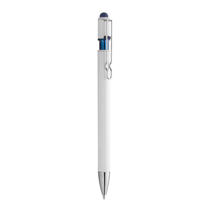 penna a sfera; meccanismo a scatto; gommino per touch screen; fusto interno a contrasto per incisone; refill jumbo con sfera al tungsteno; refill inchiostro nero; Tecnica di stampa consigliata: Serigrafica - Tampografica - Incisione -UV